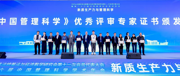 2024年11月22日至24日,中国优选法统筹法与经济数学研究会第十一次会员代表大会暨第二十六届中国管理科学学术年会在上海海事大学举办,公司陈杰教授受邀参加。作为该期刊的资深评审专家,组委会一致认为陈杰教授以深厚的学术造诣、敏锐的学术洞察力以及公正无私的职业操守,赢得了作者、编辑团队及同行专家的一致好评与高度赞誉,被授予“2022- 2023年度《中国管理科学》优秀评审专家奖”。
