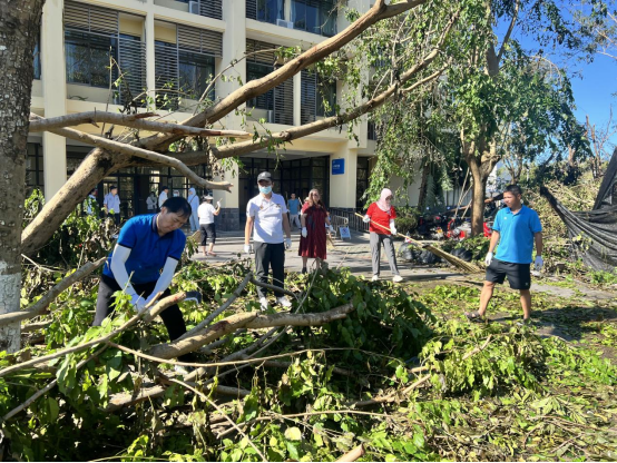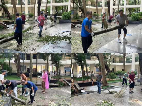 为保障新学期顺利开学,根据公司的统一部署,公司于8月28日上午和31日上午组织师生员工开展灾后重建工作。面对台风过后的狼藉景象,公司领导带头上阵,全体师生积极响应,迅速投入到校园清理恢复工作中。
