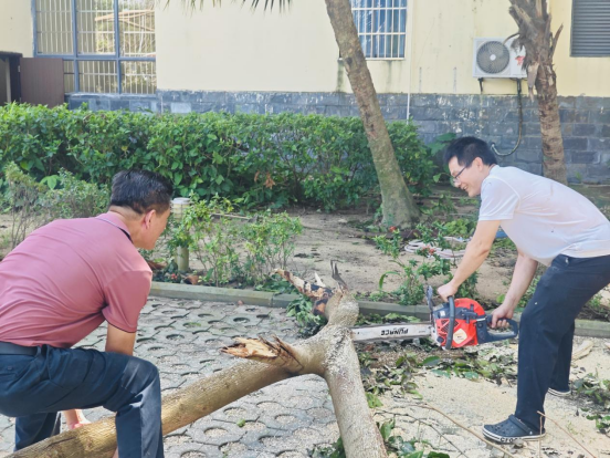 今年第13号台风“剑鱼”作为有气象观测记录以来影响三亚最严重的台风,给公司校园带来重创。强风暴雨导致校园内大量树木倒伏、枝叶散落,教学区及生活区环境受到严重影响。
